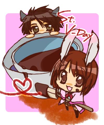 先日のチョコ溶かしてる花ちゃんに玄徳さんが邪魔しました。ぺろぺろ。
